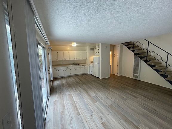 Peaceful neighborhoodNew doors and hardwareNew faux wood flooringLarge private fenced patioSkylight in bathroomWindow coverings