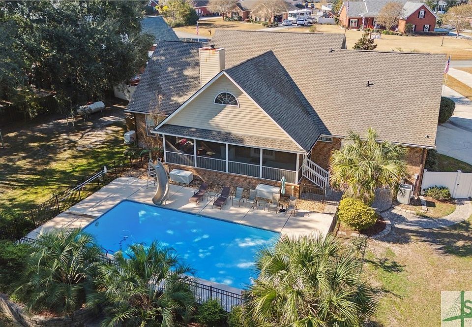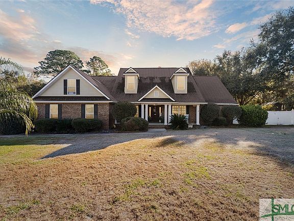 Executive home in sought-after South Effingham neighborhood. This rare opportunity offers a blend of luxury, comfort, & privacy. NO HOA! Enter your grand foyer & immediately notice custom features throughout- from the floor to the crown molding. Floor plan flows effortlessly from the formal dining room to the spacious living room, complete with a cozy fireplace. Private home office w/coffered ceilings. The kitchen is a chef's dream, open to the breakfast room. Your primary suite, along with two additional bedrooms, is located on the main floor. Upstairs, two more bedrooms plus a large bonus room provide endless possibilities. The backyard is a true paradise! Enjoy your expansive screened porch, 1.5-acre wooded lot and saltwater pool! Attached 2-car garage features epoxy floors & storm shelter! Another detached 2-car garage/workshop for all your toys! Whole house generator, Kinetico water softener, drinking water system, & new roof! Conveniently located to I-95, Airport, & Pooler!