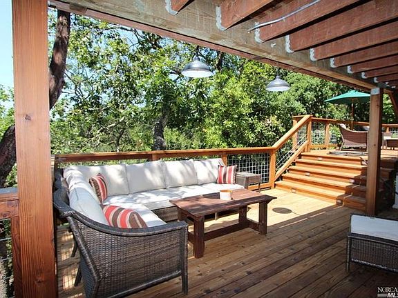 Panoramic views and a quiet peaceful setting are the winning combination for this 4 bedroom bedrooms and 3 baths home. Featuring vaulted beam ceilings, hardwood floors, stone and brick fireplaces with open floor plan. Meander through almost 2.5 acres of privacy, expansive decking, patios, built in BBQ, creek and custom tree house. Bonus full guest quarters/Au pair unit with with all amenities including kitchenette and private entrance.