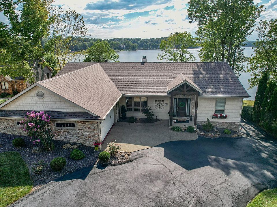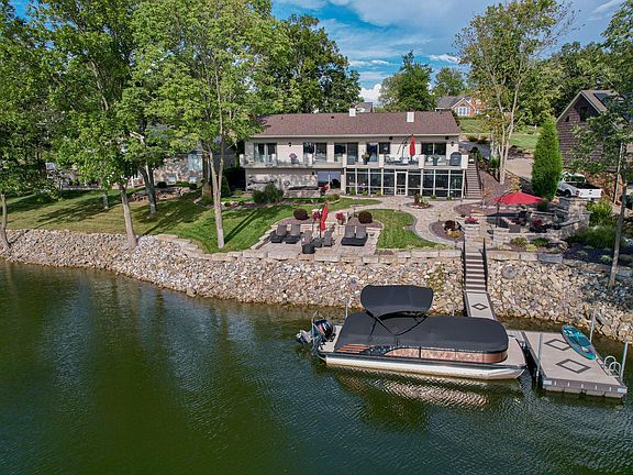Welcome to a truly exceptional property boasting the most breathtaking sunset views on Christmas Lake. This meticulously updated home seamlessly combines elegance and comfort both inside and out. As you step through the front door, you'll be captivated by the stunning Brazilian hardwood floors that guide you into the living room, where lake views unfold before your eyes. The spacious living room flows into the open dining room, complete with a wet bar featuring a river sink and a beverage refrigerator. Between the living room and kitchen, a double-sided fireplace adds a touch of warmth. The kitchen showcases a generous island with granite countertops and top-of-the-line stainless steel appliances, including a convenient microwave drawer, warming drawer and separate coffee bar. The split floor plan offers a luxurious master suite with an open view to the lake, spacious soaking tub, a shower, and an oversized walk-in closet. Additionally, there are two more bedrooms, a full bathroom, and an additional half bathroom on the main floor. Outside the main floor, a sprawling deck stretches the length of the house, providing the perfect vantage point to appreciate the stunning resort styled backyard and the lake. Heading to the basement, you'll discover a fabulous brass top/stone bar area designed for entertaining, complete with a full refrigerator and dual-drawer dishwasher. The bar seamlessly connects to a second living room, offering a second stone fireplace, ample space for relaxation and socializing. Another sizable room awaits, perfect for a game of pool or your own movie night in the home theatre area. In the basement, you'll find a fourth bedroom and another full bathroom, as well as an unfinished area ideal for storage and your personal golf cart and fitness equipment. Step outside the basement onto a vast screened-in patio featuring a tiled floor, two ceiling fans, bistro dining area, and a large-screen TV – an ideal spot to unwind. Beyond the patio, you'll find a resort-like backyard complete with a fountain, hot tub, a custom stone gas fireplace, seating area, lawn irrigation and a sun deck - all designed to maximize your enjoyment of the lake views and breathtaking sunsets. A large lighted boat dock awaits just steps away. Come and experience the ultimate lakeside living at 449 S Balthazar Drive, where every detail has been thoughtfully crafted to provide you with a life of luxury and relaxation.