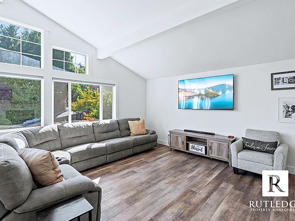 Quiet cul-de-sac location with quality interior updates. The spacious .22 acre lot features a level back lawn space and room for small RV/boat parking. The great room is vaulted with a wood fireplace insert and views of Roxy Ann peak. The upgraded & newly remodeled kitchen is highlighted with gorgeous granite countertops, custom cabinetry, lighting & a pantry. The main level primary has French doors to large deck, oversize walk in versatile space, with a large bedroom, oversized living area & private lower level entrance. . The rustic man cave out back has been finished with reclaimed wood paneling and offers power. Pets are allowed with owner approval + deposit All adults must have 2 years of verifiable rental history. All adults 18+ must have at least a 580 credit score. Credit scores between 580-600 will require an additional $500 security deposit. Household income of at least 2 times the monthly rent is required. *Cosigners not accepted* Trash and Recycling included in rent