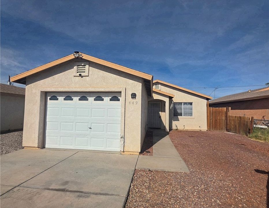 Located at 449 Sea Spray DR, Bullhead City, Arizona, this inviting home is ready to welcome you. Imagine the possibilities for culinary creations and shared moments within this central area of the residence. The residence includes a patio and a fenced backyard, offering an opportunity to enjoy the outdoors in a private setting. With three bedrooms and two bathrooms spread across 900 square feet of living area, this single-family residence, built in 2001, offers comfortable and convenient living. Make this house your home!
