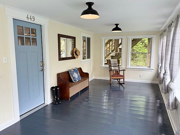 Modern farmhouse with spectacular roof deck views, located across from both Kingdom Trails/VAST, and just 5 minutes to Burke Mountain Ski Area. This recently renovated and freshly updated home boasts 1849 sqft of living space (plus additional 1,100sqft basement) 3 bedroom, 2 full bath, with an additional 4th room perfect for additional guests, hobby room, or home office. A large detached gambrel-style garage adds another 1,650 sqft. Brand new stainless appliances throughout the home, including ensuite mudroom with laundry, and backup generator. Fiber Optic cable wifi makes working from home a snap! Soak in views of Burke Mountain from your private roof deck in the primary suite, complete with oversized jacuzzi tub! Entertain guests on your additional side porch directly off the brand new open concept kitchen/dining area. Enjoy a well established chicken coop (or easily converted shed), listen to your babbling brook to the rear of the property, or simply relax around your private fire pit for complete outdoor serenity. East Haven is a K-12 school choice town. This home is the perfect outdoor enthusiasts and family getaway in the Kingdom!