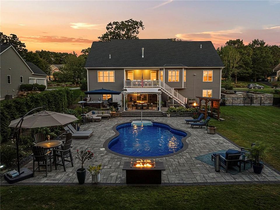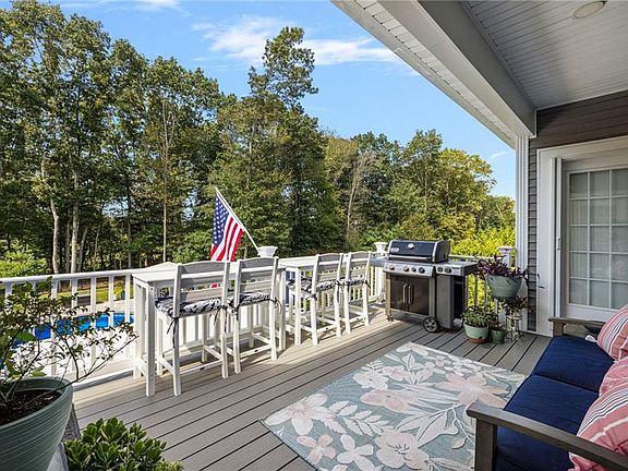 Welcome to 449 Sylvan Court, a 2020 built, 5 bedrooms, 4.5 bath luxury home crafted for effortless entertaining and modern comfort. Spanning 5000 sq ft on a .64 ac lot, this residence feels both stately and welcoming. Step through the elegant bluestone walkway into the open concept great room with cathedral ceilings, a custom chef's kitchen with quartz surfaces and a seamless indoor-outdoor flow. The primary suite is a private oasis with spa-grade bath and generous closet space. The lower level features a walkout layout boasting a workout room, rec room, guest bedroom, full bath with second laundry and cozy lounge space. Outside is your personal sanctuary: a heated saltwater pool, two tier patio, pergola with dining space, hot tub, and outdoor shower - perfect for gatherings or quiet evenings. Phantom screens, automatic irrigation, whole house generator, and built in water filtration system underscore thoughtful design. Located in sought after Slocum Woods you have access to tranquility and privacy while remaining minutes to coastal amenities, marinas and the best of southern RI. Don't miss the opportunity to own a truly turn key luxury retreat w/ uncompromising finishes.