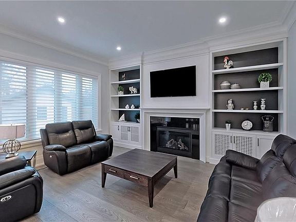 Best in quality both in construction as well as interior finishes. This fabulous home boasts an array of hi-end finishes from porcelain to wood flooring, 9 3/4" baseboards, crown molding, solid oak interior doors to custom cabinetry & wall units by Perola Kitchens. Large Impressive kitchen features a large island, Quartz Countertops, top-line built in appliances & butler servery with pantry leading to Dining room. Large breakfast area with walkout to patio. Open concept main floor. Work from home in your private den with b/in desk & book shelf. Huge laundry room with closet, Custom cabinets & built-in shelving & garage access. Open Staircase to 2nd floor lead to a luxurious master bedroom with his & hers walk-in closets, a gorgeous 5pc ensuite. 3 other Large bedrooms with large closets, ensuite & semi-ensuite. A fully finished basement with party size rec room, 3-pc bath, 5th bedroom, exercise room or possible 6th bed, large closets & large cold room perfect for a fabulous wine cellar. A gorgeous home with a driveway large enough for 6 cars on a quiet a mature area of south Oakville!