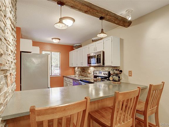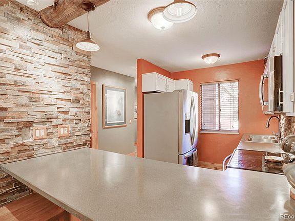 Immaculately maintained, this home offers an updated kitchen with Corian countertops, slate dry stack backsplash and accent wall, tile flooring, stainless steel appliances and breakfast bar that is open to the dining area and living room featuring a stone, wood burning fireplace, hardwood flooring along with deck access. The Upper level is where you’ll find the conveniently located laundry area and a wonderful 5-piece Jack and Jill bathroom. The Primary bedroom has hardwood flooring and walk in closet. The second bedroom has hardwood flooring and double closets. The lower lever hosts a carpeted family room with a kitchenette, beetle kill wainscoting and walk out access to the patio. The third bedroom with double closets and 3rd full bath with extra vanity space are also found here. This wonderful home offers special wall textures and warm paint colors throughout.  It truly offers that “Mountainesque “ feeling all around. It not only comes with a single car attached garage and deeded parking space, but a Marvelous Location. Close to Shopping, Red Rocks Community College, Restaurants, 6th Ave, Light Rail,Federal Center and more!!