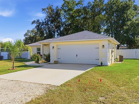 Stunning 2023-Built Home in Inverness Village – Move-In Ready & Packed With Bonuses! Welcome to this beautifully crafted 3-bedroom, 2-bath home nestled in the desirable Inverness Village community. This immaculate home offers tons of natural lighting and blends modern design with luxury finishes and thoughtful details throughout—truly a rare find! Step inside to discover solid wood cabinetry throughout and Italian porcelain tile flooring gracing all bedrooms. The kitchen and bathrooms shine with granite countertops, while the guest bathroom features a striking decorative tiled accent wall. The home is richly appointed with custom faux wood blinds, marble window sills throughout, and a lovely decorative chandelier accenting the dining area. The gourmet kitchen is designed to impress with a tiled backsplash, gooseneck sprayer faucet, LG top-of-the-line appliances—including microwave, refrigerator, stove, and an LG steam dishwasher with three shelves—plus a nicely sized kitchen pantry. A reverse osmosis system, whole-house water filtration, and water softener. The spacious master suite offers a peaceful retreat complete with double vanities, a pocket door, brushed nickel faucets, a Delta sliding glass shower door, and an overhead shower. In the living room, elegant French doors with built-in blinds open to a serene, fully enclosed and screened patio—perfect for relaxing or entertaining. Rattan patio furniture is included for immediate enjoyment. The vinyl-fenced backyard is expansive and private and is perfect for your pets or small children and also for those backyard BBQ's and a firepit. It also features mature trees providing plenty of shade and savings on utility costs, a large storage shed, and full gutters around the home. Exterior upgrades also include window shutters, custom-cut wood storm window coverings, and beautifully maintained front and back landscaping. Modern comforts continue throughout the home with Hunter ceiling fans, a WiFi thermostat, Energy Star shingles and MyQ smart garage door opener. Underground electric provided through SECO utilities, low monthly water bills provided through City of Inverness, and Spectrum high-speed internet is also available. Bonuses include four kitchen bar stools, a 65" wall mounted Roku Smart TV, soundbar, and Dolby surround sound system, living room entertainment center with built-in fireplace that also doubles as a heater, a 55" wall mounted Smart TV in the master bedroom, all window treatments, and LG large-capacity washer and dryer (big enough for large blankets). Conveniently located just minutes from schools, shopping, restaurants, and medical facilities, this home offers both comfort and convenience in a highly desirable neighborhood. Don’t miss your opportunity to own this beautifully appointed, move-in-ready home in Inverness Village! This is a non-deed restricted community and the roads are maintained by the homeowners. Taxes are currently homesteaded.