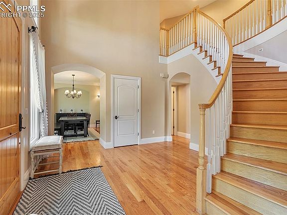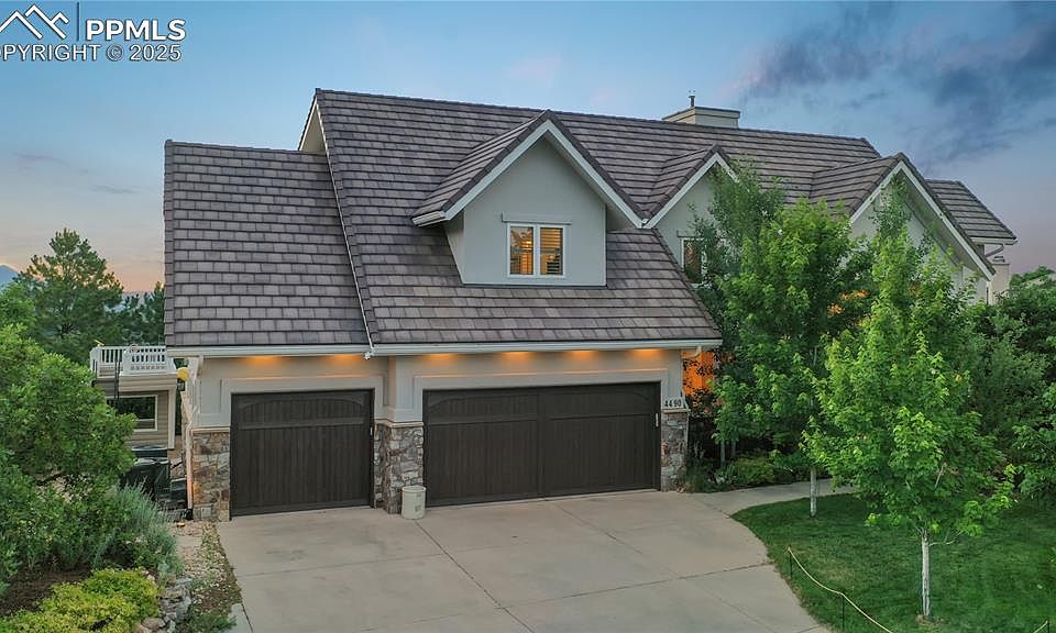 Live above it all in this breathtaking Colorado Springs sanctuary where luxury, design, and panoramic views come together in perfect harmony. Nestled in the coveted Cheyenne Mountain District 12, this extraordinary 6,782 sq ft residence offers 5 spacious bedrooms, 6 bathrooms, and an exceptional floor plan designed for both upscale entertaining and everyday comfort. From the moment you enter, you’re greeted by soaring ceilings, rich hardwood flooring, and expansive brand-new windows that frame unobstructed views of Cheyenne Mountain and the glittering city below. The heart of the home is a gourmet kitchen featuring granite countertops, high-end cabinetry, and a gas line available if you prefer to switch to a gas cooktop—ideal for the home chef who craves both beauty and function. The adjoining great room impresses with custom built-ins, a fireplace, and an atmosphere that blends elegance with warmth. Step outside onto the expansive main-level deck—perfect for hosting sunset dinners, relaxing with morning coffee, or simply taking in the majestic mountain views. An additional upper deck offers even more outdoor space to soak in the Colorado beauty. The invisible fencing around the property allows pets to roam safely while preserving the open, natural feel of the backyard. After a long day, unwind in your private hot tub tucked away in a peaceful outdoor setting. The fully finished walk-out basement is an entertainer’s dream, complete with a spacious game room, wet bar, and ample space for guests or multigenerational living. Additional standout features include a tile roof, three-car garage, two furnaces, two water heaters, and dual A/C units, ensuring year-round comfort and reliability. Ideally located just minutes from premier shopping, fine dining, and outdoor adventure, this home is the perfect blend of grandeur and practicality. If you’ve been searching for a property that offers both lifestyle and location, this is the one that truly has it all.