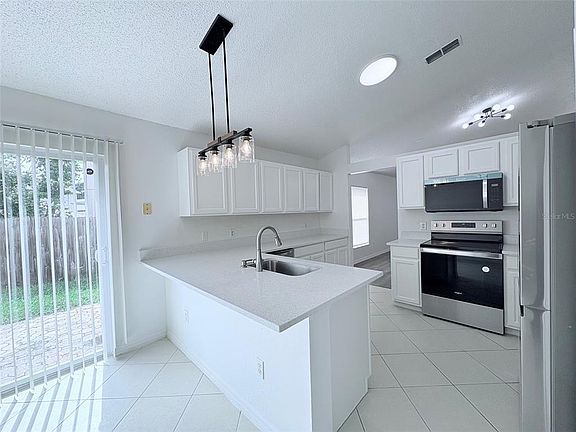 Welcome home to this beautifully renovated home residence situated on a quiet cul-de-sac in a highly sought-after East Orlando neighborhood. This single-story home has been freshly transformed with modern, high-end updates throughout. A new roof 2025, HAVC 2021, New Flooring 2024, Interior and exterior freshly paint 2025, interior home light and bathroom vanity update 2025, provides immediate peace of mind and long-term value. Step inside to discover a freshly painted, soaring ceiling, light-filled interior with a welcoming split-bedroom floor plan. The living spaces have been enhanced with newly updated flooring that flows seamlessly throughout, creating a contemporary and cohesive feel. The eat-in kitchen has been completely updated with sleek finishes, new countertops, and high-quality appliances, and also features a center island for extra prep space. The spacious family and dining rooms offer plenty of room for both relaxing and entertaining. The primary suite is your sanctuary, offering French doors, a spacious walk-in closet, and a resort-style bath with dual vanities. Step out onto the private screened patio to enjoy the Florida weather in a peaceful, fully fenced backyard. The primary suite is a private retreat with dual sinks in the master bathroom. This home offers the perfect combination of modern amenities and a desirable location, with a community pool and tennis courts for residents to enjoy. It is also conveniently located near the University of Central Florida, Waterford Lakes Town Center, SR 417, SR 408, SR 50 (East Colonial Drive), and numerous dining options.