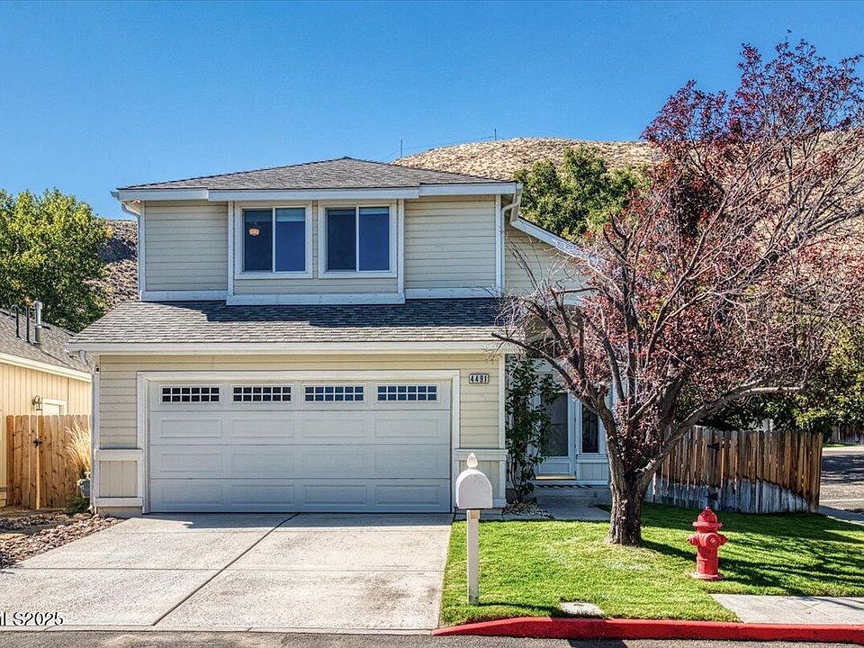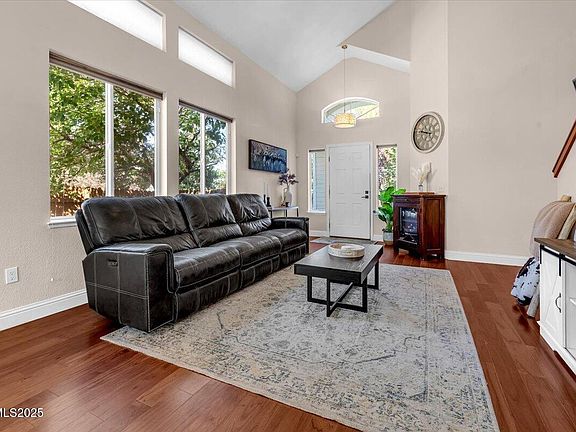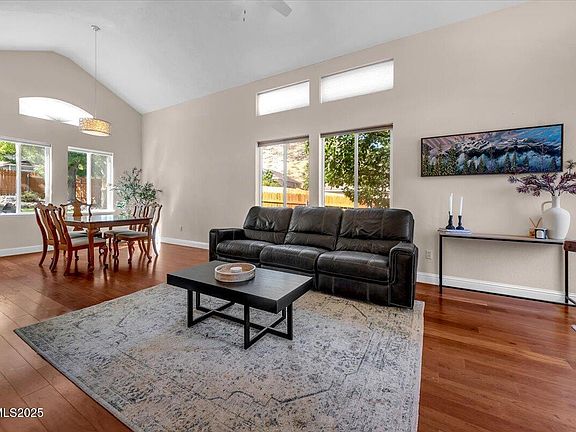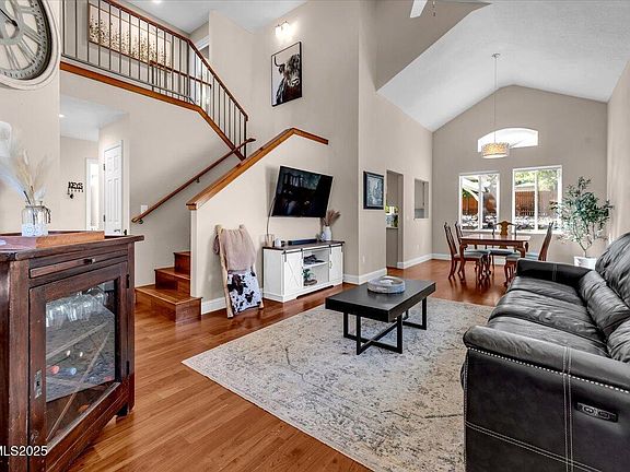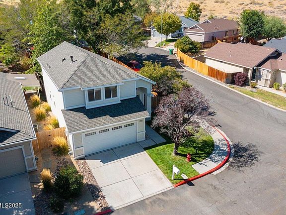 Welcome to your dream home nestled at the base of scenic Rattlesnake Mountain in the highly sought-after Donner Springs neighborhood. This immaculate 3-bedroom, 2.5-bathroom, 1,550 sq ft single-family home sits on a beautifully landscaped 0.158-acre corner lot, offering both privacy and curb appeal. From the moment you arrive, you'll be impressed by the extended driveway, 2-car garage, and perfectly manicured front yard complete with lush green grass and mature trees. Step inside and be greeted by soaring vaulted ceilings, warm neutral tones, and gleaming wood floors that create a welcoming, sophisticated ambiance. The spacious living room, drenched in natural light, flows seamlessly into the formal dining area—ideal for hosting your next holiday gathering or game day celebration. The thoughtfully designed kitchen is a chef's delight, featuring granite countertops, a stunning tile backsplash, upgraded pendant lighting, and stainless steel appliances. Ample cabinetry and a generous pantry provide plenty of storage space. An added touch of luxury awaits in the custom dry bar, complete with wine fridge, wood countertops, and floating shelves—perfect for entertaining with style. The main level also includes a full laundry room and a convenient half bath for guests. Upstairs, the primary suite is thoughtfully set apart from the other bedrooms to maximize privacy. Enjoy high ceilings, plush carpet, dual walk-in closets, and a truly spa-like en-suite bathroom. This elegant space boasts double vanities with granite counters, white shaker cabinetry, custom tile flooring, and a beautifully tiled walk-in shower—a true retreat at the end of your day. Two additional bedrooms offer generous space, large windows with city and Sierra views, and ample closets, while the second full bath features charming subway tile and stylish finishes perfect for family or guests. Step outside to your personal oasis—the fully landscaped backyard offers mature shade trees, a lush lawn, and a covered patio ideal for morning coffee or evening relaxation. You'll love spending time in this peaceful and private outdoor space year-round. Pride of ownership is evident throughout. Recent upgrades include a newer roof (within 5 years) and a new HVAC system (1.5 years old)—giving you peace of mind and comfort for years to come. Don't miss your chance to own this meticulously maintained masterpiece in one of Reno's most desirable neighborhoods. Opportunities like this are rare—schedule your private tour today! Call Dustin for more information.