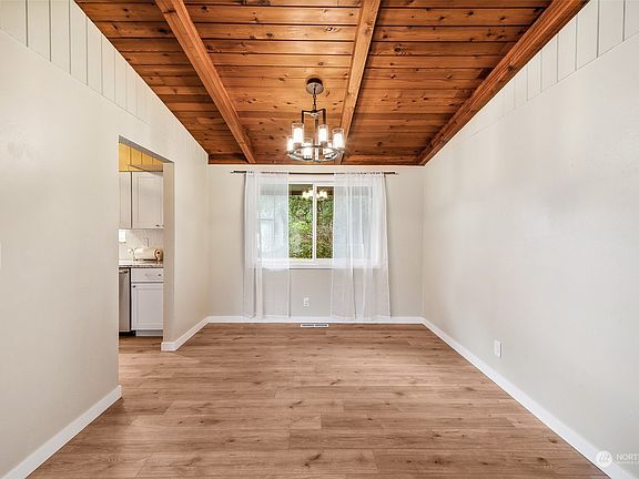Fully updated ranch style rambler on over half an acre! Close to shopping, Enumclaw golf course & the historic King county fairgrounds. This home boasts w/ warmth & light from the new windows and vaulted tongue and groove cedar ceilings. Large primary bed w/ attached bath. 2 additional beds & full 5-piece bath in hall. Kitchen is stocked with SS appliances, granite counters & stunning marble tile inlay. New furnace & TWO fireplaces. Attached 2 car garage and detached heated 1 car shop with game room/potential for MIL. Ample storage and parking. Mature apple trees in back and a large patio. Perfect yard for gardening, entertaining or relaxing in a hammock under the old growth trees. This unique property is one you don’t want to miss out on!