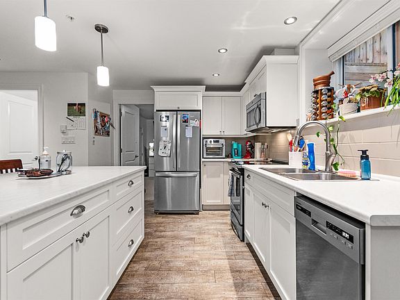 Your dream home awaits at River's Edge. This exceptional residence offers 7 spacious bedrooms, 4 bathrooms, and over 3,S00?sq?ft of refined living space. The bright and airy main floor features soaring ceilings, a chefs kitchen with multiple pantries, and a flexible family room that can serve as a main-floor bedroom. Upstairs, discover four generous bedrooms, including a stunning primary suite with a luxurious 5 piece ensuite. The fully finished basement hosts a legal two bed suite, complemented by a separate rec room with flexible use. The private backyard features two covered patio areas. A detached two car garage with lane access and mezzanine storage, plus extra suite parking. Steps from the Rotary Trail and a new K-8 school, blending suburban serenity with exceptional functionality