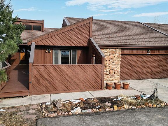 Welcome to this stunning townhome in Echo Village, nestled in a peaceful cul-de-sac with breathtaking views of the foothills. Just a mile away from the Perry Park Country Club, this private retreat offers the perfect blend of relaxation and convenience. As you step into the beautiful great room, you'll be greeted by soaring vaulted ceilings and expansive showcase windows. You'll feel like you're in a mountain retreat as you take in the scenic view of the meadow and trees. Unwind on the expansive redwood deck while taking in the breathtaking view, or gather around the charming stone fireplace in the cozy living room. The kitchen, conveniently situated near the dining room, boasts a gorgeous granite countertop and provides access to a private fenced-in patio in the front yard. It's the perfect spot to enjoy a meal outdoors or simply bask in the serenity of the surroundings. Retreat to the primary suite featuring stunning showcase windows, high vaulted ceilings, a private en-suite bathroom, and direct access to the spacious deck. The lower level is flooded with natural light and offers two more bedrooms, a full bathroom, and a comfortable family room with access to the lower-level patio. Convenient attached 2-car garage with storage cabinets. Perry Park offers acres of open space, hiking/biking trails, horse stables and views of Pike National Forest and it is only 5 minutes from Douglas County's new Sandstone Ranch Open Space and Sandstone Ranch Trails. Perry Park is one of the most desirable private golf course communities in Douglas County; the 18 hole championship golf course is the winner of multiple Colorado Avid Golfer magazine CAGGY awards. Perfectly situated in a tranquil environment, you will enjoy the abundant wildlife & inviting community feel without the city lights. Have the "away from it all" feel without giving up suburban amenities. Only 25 minutes to Castle Rock, 40 minutes to DTC and Colorado Springs!