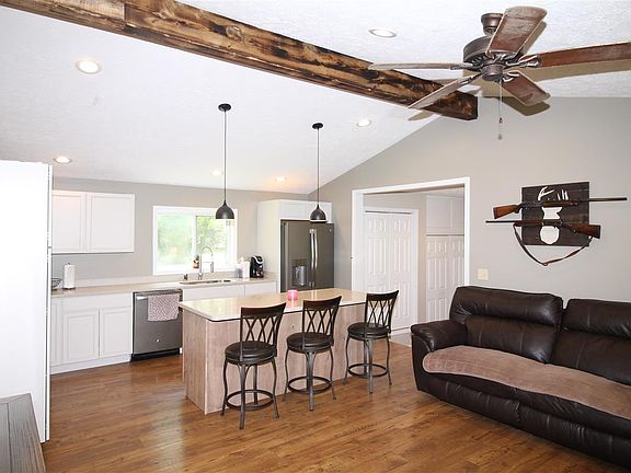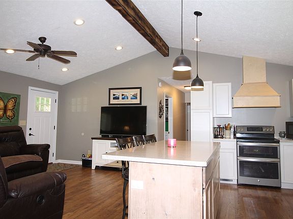 LOOK- 3.7 ACRES IN A PEACEFUL COUNTRY SETTING W/ A COMPLETELY RENOVATED HOME FOR UNDER $75,000!! Walk into this beautiful 3 bed 1 bath home w/ vaulted ceiling, exposed beam, & spacious great room. You will love the upgrades of recessed lights & beautiful floors. A kitchen w/ brand new cabinets, solid-surface counters, & high grade appliances. Easy access to laundry & additional living space too. NEW doors, plumbing, & electric. You'll love the trees, outbuildings, & the pond too! This won't last long!!