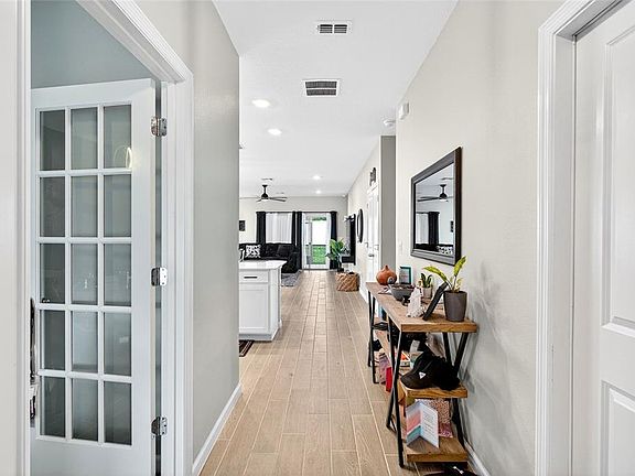 Stunning 2024 Lennar Halle Model with Custom Upgrades, incredible curb appeal and Spacious Backyard Oasis! Welcome to this beautifully maintained 3024 Lennar Halle model, perfectly blending modern design with everyday comfort. From the moment you arrive, the custom driveway sets the tone for the impressive upgrades found throughout this home. Step inside to an inviting open floor plan that’s ideal for entertaining and family living. The gourmet kitchen is a chef’s dream, featuring quartz countertops, stainless steel appliances, a custom backsplash, and a large center island with seating—perfect for casual dining or gathering with guests. Enjoy seamless indoor-outdoor living with sliding doors that open to a custom paver screened-in and covered lanai—a perfect spot to relax, dine, or entertain year-round. The large fenced backyard offers ample space for play, pets, or future outdoor enhancements. This home combines luxury, comfort, and functionality in one exceptional package—ready for you to move in and make it your own! Key Features: Lennar Halle Model with wood faux tile floors Custom paver driveway Open concept floor plan Gourmet kitchen with quartz countertops, stainless steel appliances, custom backsplash, and island Custom paver screened-in and covered lanai Expansive fenced, with no neighbors behind Office or 4th bedroom option with glass french doors 2024 water softner system 2024, roof, hvac and hot water heater Low hoa / year! Minutes to WEC!