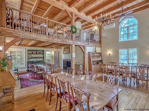 One of a kind historic circa 1800's colonial with stunning post and beam addition offers spacious living room with 20' ceilings, beautiful arched windows offering plenty of light and double doors that lead to an expansive blue stone patio overlooking the mature landscaped grounds and firepit. Updated commercial kitchen, loft entertaining area with full bar. Five bedrooms, four with fireplaces and their own baths. Additional single family home on the property features wood floors, beamed ceiling, open kitchen with door to patio with view of the milking barn. Second floor has been opened to one large bedroom with full bath. This could easily be returned to two bedrooms. Endless possibilities exist for this amazing property from single family residence, restaurant, or whatever your heart desires. Currently being used as a successful Inn and wedding Venue.