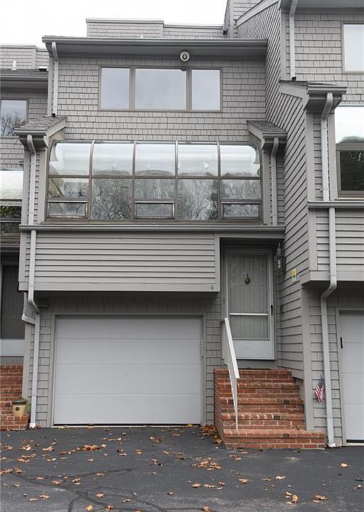 Waterfront Condominium facing East Greenwich Bay. Walk to East Greenwich Historic Main Street shops, restaurants, salons. Close to Providence, South County, Newport, 10 minutes to TF Green International Airport. Spacious 3 level condo with living room deck, Master bed/bath, abundant closet space, with decks overlooking yard and harbor. Third floor loft has multiple uses....office, guest area. Lots of closet space. Large basement/rec area. Pull into the integral garage on snowy days for easy access to kitchen stairs. Additional parking space. Guest parking. Great space with lovely natural light. Update to suit!!