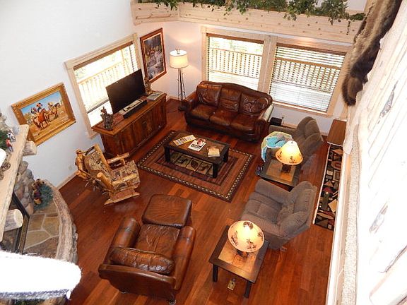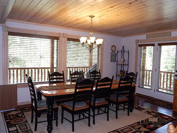 Four levels of living area allow for the large gatherings! Plenty of space to spread out and have a great time but also designed so there is space to gather when you want to be together. The kitchen is a chef's dream. Beautifully appointed granite counter tops with double ovens; commercial refrigerator, Jenn Aire gas cook top, and trash compactor with spacious breakfast bar and open to the living room and dining area. The main level has covered decks that wrap around three sides of the home with covered deck on the upper level as well as a covered patio out the downstairs family room. A finished sleeping area is above the garage with 3/4 bath for those who want more privacy or just the exceptionally large gatherings. Well designed landscape allows for a perfect combination of natural and groomed space. The combination of lawn with automatic sprinkler system, blacktopped circular driveway, comfortable fire pit, and the beauty of the forest make this home a true retreat you will enjoy for many years to come.