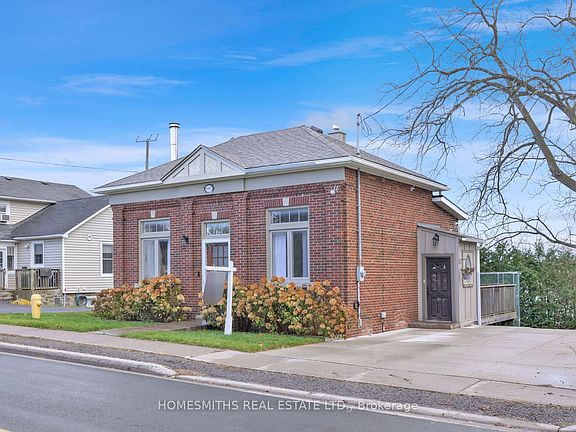 Have you ever heard the expression, "built like a bank"? 4497 Highway 2 Newtonville wasn't just built like a bank; it was literally built, AS a bank! This converted house, once the town's primary financial institution, maintains a commanding presence in Newtonville with its classical architecture, featuring an all-brick structure with four distinct brick masonry pillars. Originally built for the Standard Bank of Canada in 1927, the building later became a branch of the Canadian Imperial Bank of Commerce before eventually being converted into a private residence in 1939. Inside, the home artfully blends residential comfort with historic charm. The main living and dining area, previously the main banking hall, boasts 10-foot ceilings, huge windows that fill the space with natural light and original wood flooring. The main floor offers a convenient bedroom or home office with built in murphy bed and a full 4-piece bath with clawfoot tub. Stairs lead up to a huge primary loft bedroom with dormered office nook. The property features a high and dry walk-out basement with a laundry room and the original vault room ideal for future finished living space. Step outside to a beautiful, private hedged rear yard with mature trees and an elevated, south-facing deck, perfect for summer entertaining. This unique piece of history is located just 3 minutes from Highway 401 and under an hour from downtown Toronto. New roof 2025, Hi efficient gas furnace 2014, a/c 2018 and more. See Virtual tour Imagine owning a unique, fully detached piece of history for the price of a cookie-cutter condo?