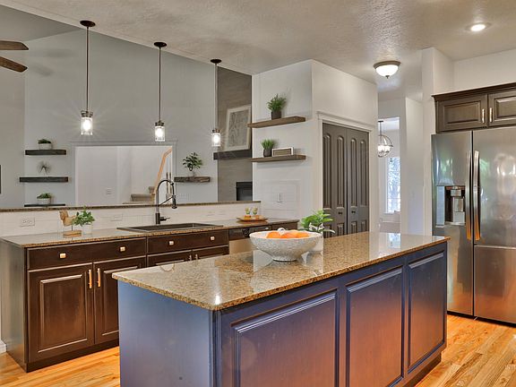 Priced to move! Beautiful maintained Bridgetower home offering over 2,800 sq ft of thoughtful living space. Includes 4 bedrooms, 2.5 baths, a dedicated office, upstairs bonus room, & main-level primary suite. The 3+ car garage with sports court and extra door provides plenty of room for vehicles, projects, or fitness. Fresh paint, hardwood floors, vaulted ceilings, & a double-sided fireplace add warmth and style. The gourmet kitchen is perfect for entertaining with granite, prep island, breakfast bar, and oversized pantry. Enjoy whole-home surround sound for gatherings or daily living. The master suite opens to a private patio with hot tub pre-wire & the master bath features dual closets, soaker tub, and walk-in shower. Upstairs: three large bedrooms, a full bath, & a versatile bonus room for media or play. Outside, relax on the covered patio surrounded by mature landscaping, large shed, treehouse & a private sports court. Corner lot location offers easy access to shopping, dining, & Bridgetower’s scenic path network.