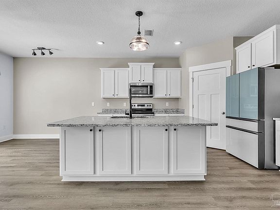 Welcome to this newer construction Craftsman-style home, a true gem blending timeless design with modern comfort. Assumable VA loan options with qualified Buyer!! The Hardie board exterior delivers both durability and curb appeal, while inside, you'll find 5 spacious bedrooms and 3 full baths. Step inside to an inviting open-concept living space with LVP floors and custom-built wainscoting paneling that define the Craftsman aesthetic. The kitchen is a conveniently central to the living space - complete with an island breakfast bar, granite countertops, stainless steel appliances, an undermount sink, smooth-top range, quiet dishwasher, and a generous pantry. Adjacent to the kitchen, the dining area offers the perfect setting for gatherings. With two living spaces - one upstairs and one down - there's room for everyone to spread out. The primary suite is on the second level in a tranquil retreat with a large walk-in closet. The ensuite bath is a spa-like oasis with dual vanities, garden tub, and separate shower. Three additional bedrooms and a full bath share the second level, while a first-floor guest suite and bath offer ideal separation for visitors and multi-generational living. The backyard offers an extended patio space with a privacy fenced in sanctuary, and a portable hot tub that conveys. For storm protection and wind mitigation insurance credit, this home comes with FabricShield hurricane protection and is located in the desirable Flood Zone X (no flood ins required). Enjoy the freedom of no HOA, giving you the flexibility to make this home truly your own. Other great amenities include upgraded fixtures, updated mirrors in all bathrooms, Smart Home "Connect" System which includes your video doorbell, keyless entry, and fabric hurricane window protection. All of this and located in East Gulf Breeze (Midway) just minutes from Pensacola Beach, Navarre Beach, Hurlburt Field AFB, Eglin AFB, NAS Pensacola, medical facilities, restaurants, and so much more!
