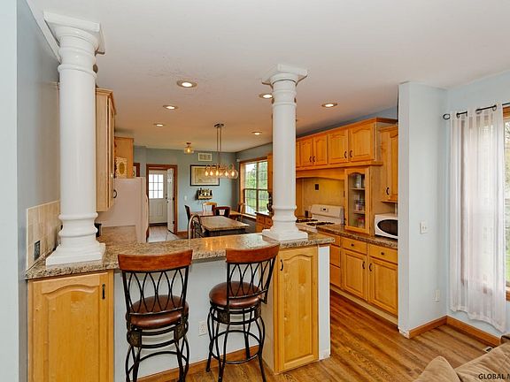 Move right in to this beautiful 8-year young Ranch featuring 3 bedrooms, 2 full baths and over 1700 sqft of living space. The gorgeous kitchen with island opens to living and dining area and features breakfast bar perfect for entertaining quests. Enjoy 1st floor laundry, beautiful hardwood floors and reading nook. Master bedroom has its own private en suite with soaking tub and walk-in closet! Unique walk-out basement with 3 Car garage (perfect for storing all of your toys) and awesome bonus room that current owners are using as a recreation room. Just minutes to KAPL, Global, downtown Saratoga and the lake!