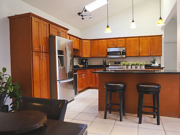 This spacious 3-bedroom, 2-bath home feels more like a retreat than a rental with vaulted ceilings, skylights, and an open floor plan that breathes light and air. The modern kitchen features stainless appliances (yes, even a dishwasher not pictured!) and granite countertops. Every bedroom comes with blackout curtains so you can fully unplug.