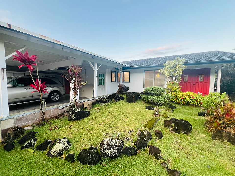 Descriptions: A spacious house with 3 bedrooms, 2 bathrooms, 1 dining room, 1 living room, 1 family room, 1 laundry room, a covered patio, outdoor spaces, beautiful garden, 2-car carport, new floors, paint, lights and new appliance, surrounded by plants, in a quiet neighborhood in HALE KOU area.