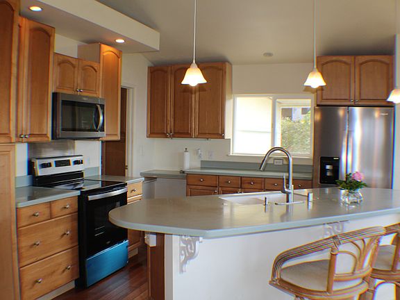 Diamond in the rough ready to add your colors! This beautiful 3 bedrooms and 2 baths home of 1,424 sf. has ocean views from kitchen, living room and master bedroom! Designed with kempas wood flooring; corian counter tops in kitchen and two <br>bathrooms; and solar hot water system, has low maintenance and utilities savings! Well designed throughout and convenient location in excellent neighborhood. Low maintenance landscaping surround the house growing Hawaiian Peaches; Puakenikeni; Pikake; assorted Hibiscus; Ti's; scented Pink Roses; assorted Bromeliads; and more!<br>Plus large covered deck/lanai and spacious garage with storage built-ins! Wonderful <br>New Appliances never used: Whirlpool Refrigerator, Whirlpool Range/Oven, Whirlpool Microwave and Frigidaire Dishwasher! Enjoy your beautiful home in Honokaa!