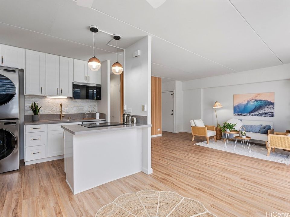Welcome to Na Pali Gardens, a centrally located condominium in the heart of Kaneohe, nestled beneath the stunning Ko'olau Mountains. This 2-bedroom, 1-bathroom, 1-parking unit offers beautiful views and refreshing breezes. Recently updated, the condo features a brand new kitchen with shaker cabinets, quartz countertops, new appliances, and luxury vinyl plank flooring throughout. The unit also includes modern light fixtures and fresh paint. A recent building re-piping project now allows for a full-size washer and dryer within the unit. The bathroom was renovated for wheelchair accessibility, including a wider door and an accessible sink. Na Pali Gardens Building B is a secure building with a fobbed elevator, security patrol, and an on-site resident manager’s office. Residents enjoy amenities such as a swimming pool, BBQ areas, community laundry and meeting rooms, all surrounded by lush landscaping. Conveniently located just minutes from Hoomaluhia Botanical Garden, Windward City Shopping Center, and with quick access to H-3, Likelike Highway, and public transportation.