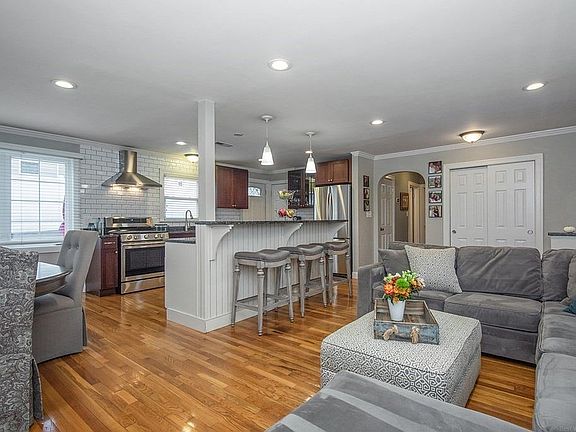 Turn-Key Ranch Style Home completely renovated in 2015. Roof & vinyl siding, generous open floor plan, kitchen with dining area, subway tile backsplash, recessed lighting, detailed crown molding, granite counters, two tier island with granite counters, custom wood cabinets and side panels, pendant lighting, SS appliances, SS Samsung Gas Range (1yr old), SS Samsung Fridge/Freezer(1yr old), hardwood floors throughout, freshly painted interior walls, master bed room w/vaulted ceiling, walk in closet w/custom built shelves, master bath with grey tiled frameless enclosed glass shower, tile flooring, linen closet, ceiling fans w/lights in all "4 Bedrooms, Central Air, Nest Thermostat System, installed rear wood deck, fire pit, shed **approx 400sq ft unfinished basement ready to be completed as bonus room/media room/gym, laundry w/ double sink, full walk out to rear yard, rear deck with fire pit. ***Offers, if any, due Monday (3/22) by 12PM. Please allow 24hr seller reply***