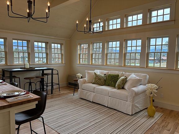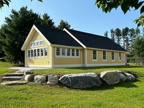 “The Frosting Is On The Cake”. This Brand New Home Is Finished and Ready For Occupancy! Like a RAY OF SUNSHINE this yellow dreamboat will be sure to steal your heart!!! Built with distinction and loving care by a building team who have been creating custom homes for over 50 yrs. From the soaring shiplapped ceilings to the dreamy authentic maple floors you’ll revel in all of the intricate touches this home has to offer. Creamy, custom cabinets are dressed with counters of matte black granite & outfitted with stainless appliances. The copious island serves as extra workspace, storage and a place to sit and regale about your day with the cook. The bedrooms are located off a wide, private hall that also has a double door access to the latest in laundry appliances, the LG Wash Tower. On the south side sits a stone patio and on the north a long porch accessed by artistic stone steps. A short morning walk brings you to a meandering brook which is part of the common area. Only 10 minutes from Stowe and 5 minutes from shopping and eateries. The famous Lamoille Rail Trail is just a whisk away for walking and biking. Float your kayak at several nearby sparkling bodies of water or enjoy golfing just 5 minutes away. Single level living at its very best. One of owners is the Listing Agent.