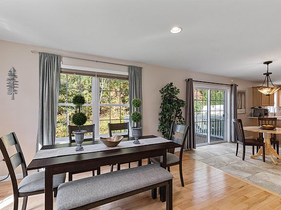 Set on 2.76 acres in a wonderful neighborhood, this charming 3-bedroom Colonial blends modern updates, natural beauty and sustainable living. A welcoming front porch invites you into a home filled with calming, warm tones and thoughtful updates. The open-concept living and dining area is perfect for entertaining, centered around a gas fireplace with tiled surround. The spacious, updated kitchen features quartz countertops, tile backsplash, ample cabinetry, room for a table and direct access to the back deck. Off the kitchen, a family room offers you additional flexible space. A convenient mudroom with coat hooks and adjacent laundry room provide functional storage. Upstairs, the primary suite boasts a large walk-in closet with built-ins and a private en suite bath. There’s two additional bedrooms and a full bath on this level. You’ll love the renovated basement with extra living space, luxury vinyl flooring and plenty of storage. Updated lighting throughout, along with an updated bathroom complete this move-in-ready home! Outside, this property truly shines! Enjoy a beautifully landscaped yard with native perennials and fruit trees including apples, cherries, pears, berries, and more. Owned solar panels provide low-to-no electric bills and free EV charging. Located off Route 7, with easy access to I-89 and local amenities, this property is ideal for small-scale homesteading, complete with a wide array of plants and space for livestock or gardens!
