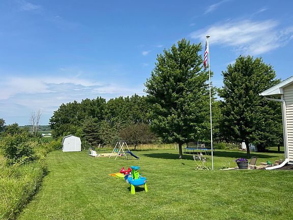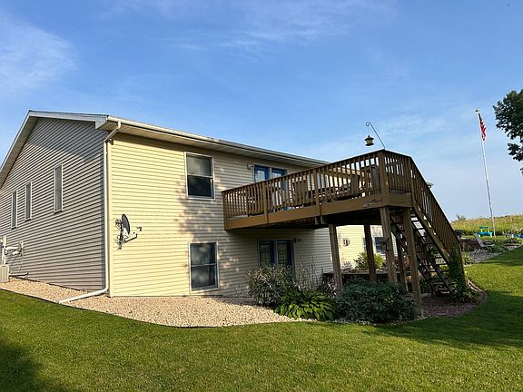 Searching for a country home within a cozy neighborhood? Located just south of the city of Elgin, this property provides stunning countryside views to the south, east and west! Situated on 1/3 acre lot, this 4 bedroom, 3 bathroom, walk-out rambler has an open floor plan with vaulted ceilings, LVP flooring, oak cabinetry and trim throughout. 3 bedrooms on the main level! Primary bedroom with primary bath with walk-in shower and jetted-tub. Family room provides two separate spaces or one large room! 4th bedroom, full bath, den/office, laundry and utility room and huge storage room. French doors lead to the patio shaded under the large deck. Huge, private backyard with awesome landscaping of perennials, storage shed and large trees. Heated, insulated and finished, 720 square foot garage is an extension of living space! Panoramic countryside views practically surround this home. Enjoy gorgeous sunsets throughout the year! Great opportunity to own in the country!