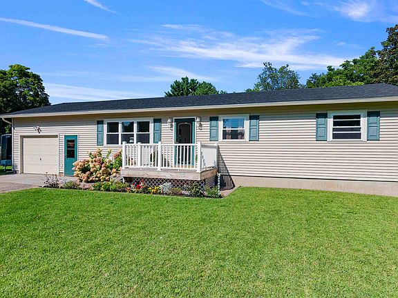 Pride of ownership shines in this absolutely PRISTINE 3 bd/1ba ranch! Completely MOVE-IN ready and spacious, the many tasteful improvements to this home include brand new paint/carpet throughout, new roof '24, natural gas Weil McLain heating & HW system '22, BEAUTIFUL tiled bath remodel '19, & all new windows '07. Family gatherings are a breeze in the custom maple kitchen with all brand new stainless appliances that flows nicely into the huge, sunlit living room. Entertain on the gorgeous 12x20 composite deck '18 overlooking the beautiful .5A lot, or sip coffee on the lovingly landscaped 8x10 composite front porch '18. The huge full basement with great storage shelving has also been freshly painted and is ready for future expansion! The garage is insulated and includes 2 workbenches. In a great location within walking distance to all town amenities, this lovely home is completely ready for its new owners to love and enjoy as these owners have!!