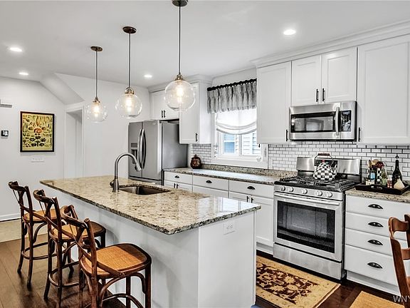 Spectacular 4 bedroom, 2 full bath home updated to perfection in prime North Buffalo location! Charming exterior with updated windows and vinyl siding! Upon entry you are greeted by an exquisite open floor plan. Updated modern kitchen with granite, recessed lighting, artisan cabinetry and SS appliances. Formal dining room adjoins kitchen! Kitchen opens to large family room with gas fireplace, custom mantel and millwork. Two spacious bedrooms on first floor plus full bathroom! Second floor has 2 oversized bedrooms! Primary en suite includes updated bathroom and enormous walk-in closet with custom shelving! Too many updates to list but they include paint, flooring , light fixtures, fireplace (23), front door, refrigerator (25), AC (23) window treatments and more! Wonderful rear yard is fully fenced with patio and garage! Offers due November 18th at 8:00pm.