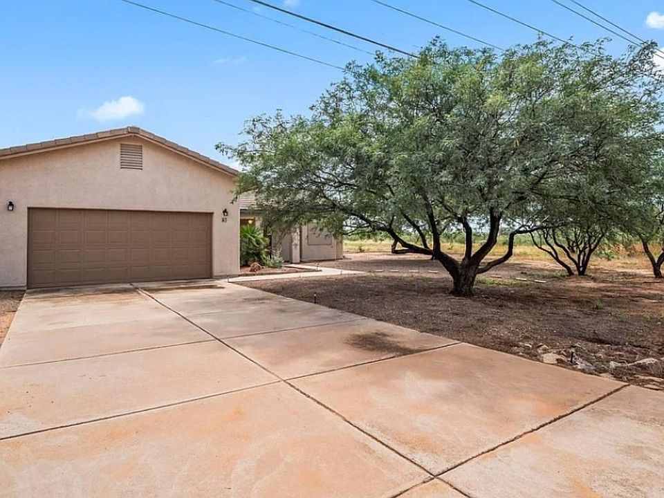 A WOW home! Pristine and so well cared for. Mountains all around you, enclosed rear patio with paver bricks. Dining area, small kitchen eating eating area, split floor plan, double car garage. Views abound, sounds of nature and star gazing are great. Neighbors but... beyond an arms length, lovely country living. 3 bedrooms on a split floor plan, 2 baths. A perfect home for a beginning family or a great winter home for snow birds or produce folks. Cement flat tile roof, wood frame stucco and all in lovely desert colors. No Carpet, beautiful tile floors, pantry in kitchen and wine rack built in to cabinets and a great laundry room off garage. Don't miss this will cared for home. Property can accomodate a workshop or storage unit! New multi stage A/C unit.