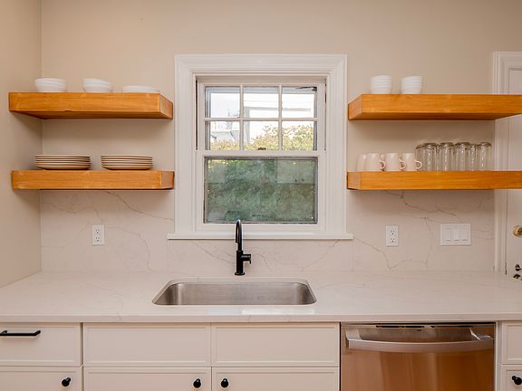 The new bathroom has a shower over tub, floating vanity and classic subway & penny tile. The primary bedroom offers a king sized bed two large closets and the original chest high wainscoting. The ceiling boasts original detail and gives this room an elegant, hotel-like feel. The second bedroom is currently styled as a guest room, but would easily convert to an office.