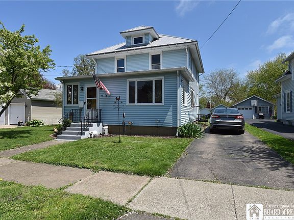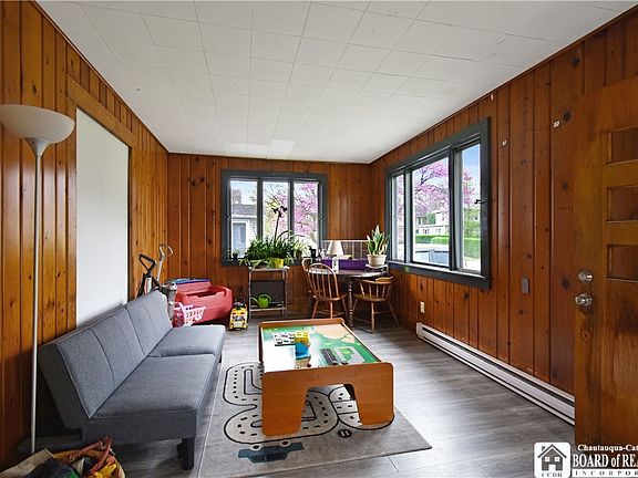 Located in the quaint Village of Westfield, this inviting 3-bedroom, 2.5-bath home offers original charm and practical living spaces. Hardwood floors run through most of the house, and original woodwork adds timeless character. A spacious year-round front porch welcomes you and opens into a large living room, offering a flexible space to relax, work, or entertain. The bright kitchen includes a casual eat-in area and connects to a formal dining room with original built-ins. A convenient first-floor laundry room with a half bath and in-floor heating adds everyday ease and comfort. The full walk-out basement provides ample room for storage or future use. An original wood staircase leads to the second floor, which features three bedrooms and a full bath. The primary bedroom includes two closets for added storage. Out back, a rear deck offers just the right amount of space for outdoor dining. The home is conveniently located near Welch Field and not far from downtown shops, restaurants, the library, and the school—a truly sweet spot in the village, full of charm and potential.