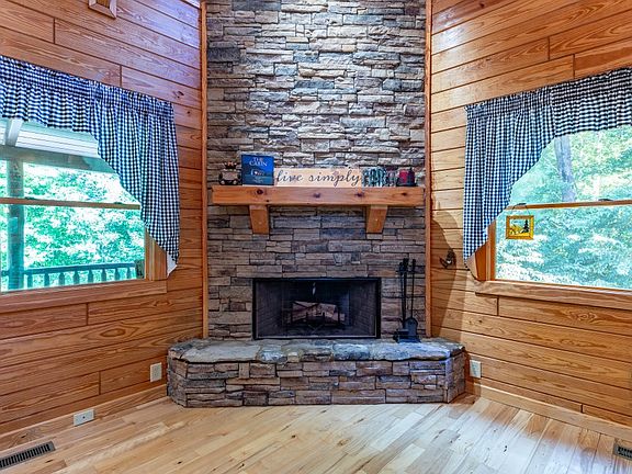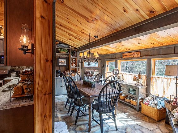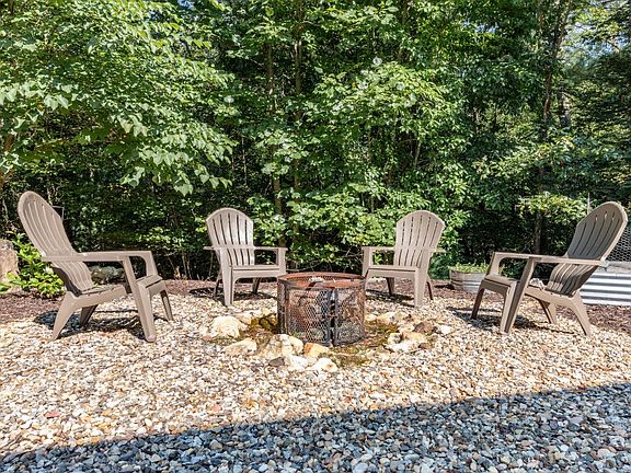 This original-owner cabin-style home has been meticulously cared for and underwent significant updates in 2019 including new sinks, toilets, custom bathroom countertops, stainless steel appliances, & kitchen cabinets with solid wood/soft-close doors, featuring leathered granite countertops in the kitchen & main floor half bath. Recent additions encompass exterior paint, driveway gravel, & landscaped gardens with perennials and mature trees, eliminating lawn maintenance. The main level showcases a vaulted living room with a floor-to-ceiling stacked stone wood-burning fireplace, exposed beams, & abundant windows for natural light. The 2015 dining room addition includes a built-in hutch with an electrical outlet, ideal for a coffee bar, large windows with beautiful mountain views, & natural stone floor. The top floor features a vaulted open loft office/study home office & a BR overlooking trees plus a full BA w/ a handmade vanity c-top. The lower level includes a third bedroom with patio access & nearby fire pit, plus an oversized rec room/den. A 2013 2-story outbuilding w/ windows & a concrete foundation houses a workshop with electricity, cabinets, counter space, peg-board wall, & ample storage. Additional features: hickory wood flooring, LVP flooring, ample parking, & gently-sloped woods with potential vista pruning for a ridge view. Come explore this truly peaceful setting that's a quick 12-min drive to DT Blue Ridge, offering shopping, dining, breweries, & wineries.