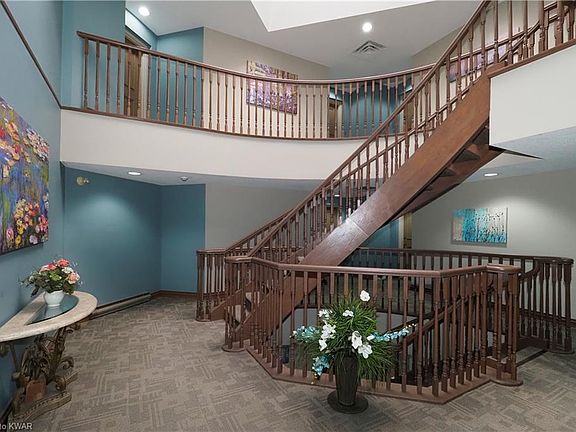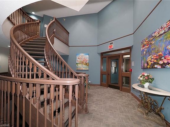 Rare find main floor 2 bedrooms,2 baths ,2 parking spots in the "The Glen of Willowbrook "with tranquil view overlooking the Willowwells pond. . This bungalow style unit features an ample sized in suite storage area/ exercise room, a garage and covered carport as well as 2 walk outs to a covered patio. Newly renovated thru out. over 90,000 spent in past year. flooring,kitchen, 2 walk in showers . Staircase form the kitchen leads to your own private garage and carport. Insuite laundry . A great cul de sac location with walking trails ,close proximity to Conestogo Mall,public transit and uptown Waterloo . Only 8 units in the building. These units do not come up for sale very often .