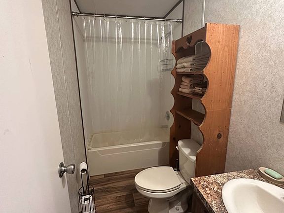 #02799 This beautiful waterfront setup is waiting for it's new owner! Located on Lot 11 in the Sandy Shores Subdivision, this 1120+/- square feet, 3-Bedroom, 2-Bathroom mobile home sits on a 0.54+/- acre waterfront lot on the South end of Toledo Bend Lake. This would be an ideal property for either a full time residence or a camp, the possibilities are endless with this property! The kitchen and living room have an open concept, so there is an ample amount of room for entertaining. With windows facing the lakeside in the kitchen and living room, you can sip coffee from inside overlooking the lake. Walk into the master bathroom and you are welcomed with plenty of space and a garden bathtub in the corner, and a walk in shower in the other corner. Walk onto the back porch and there is even more space for entertaining and hosting! Plenty of room to add patio furniture and relax in the evenings after a long day of fishing! The beautiful backyard also has a fire pit, for those fall and winter days you want to sit around the fire and relax. A seawall is already in place, so one less thing you have to worry with! The property is coming partially furnished (beds in all bedrooms, two recliners, one couch, all appliances). The front AND back porch are handicap accessible!