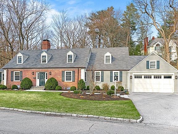 Sprawling expanded cape set on stunning private 1/2 acre lot in coveted Brooks neighborhood! The curb appeal alone will draw you in to this spacious 4300+ sf 4BD 4 BA home offering a classic exterior with a stunning "must see" interior; featuring formal spaces great for entertaining blended w/casual living areas both inside & out w/ walls of floor to ceiling windows capturing the elements of nature, visually blending the serene setting w/ the chic contemporary interior. The gorgeous new kitchen w/ 48" gas range is the heart of this home w/ stunning family room wall of sliders to deck & fabulous patio/yard recently completed by top landscape architect. The first floor also features a guest suite w/ adj. bath, laundry, plus a home office or playroom, mud room & 2 car garage. The second floor features a glorious primary suite w/ full bath / steam shower & walk in closet; plus two additional large bedrooms & full hall bath. Newly finished LL w/ full bath / guest suite & Family/Media room!