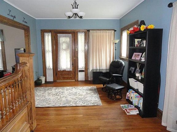 MOVE-IN ready FOUR BEDROOM city home. Convenient to all amenities. NEWER KITCHEN, separate dining room, den/foyer and living room with all wood floors. Newly carpeted bedrooms and full bath upstairs. LOW UTILITY COSTS. Walk-up attic. FENCED YARD plus large deck. OVERSIZED TWO CAR garage with plenty of space for extras. Low maintenance vinyl siding. Full basement treated with B-DRY system so very dry! Listing agent related to owners.
