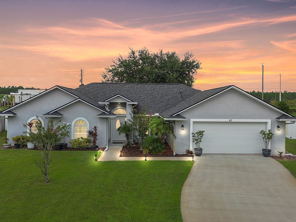 Well-maintained ranch in Palm Coast! This concrete block & stucco home features a new roof (2024), HVAC updated in 2017, and comes partially furnished with a 10,000-watt generator & transfer panel (powers whole home except stove & HVAC). Enjoy vaulted ceilings, tile & carpet floors, and a screened covered patio overlooking the fenced yard. Outside includes an irrigation well & sprinkler system for easy lawn care. The oversized 2-car garage offers ample storage. Utilities: public water, PEP sewer, cable-ready. Move-in ready with major upgrades already complete! All information pertaining to the property is deemed reliable, but not guaranteed. Information to be verified by the Buyer. Be advised that cameras may exist recording audio and video inside/outside the property, such as ring doorbells. Photos are digitally enhanced and could be altered, please verify.