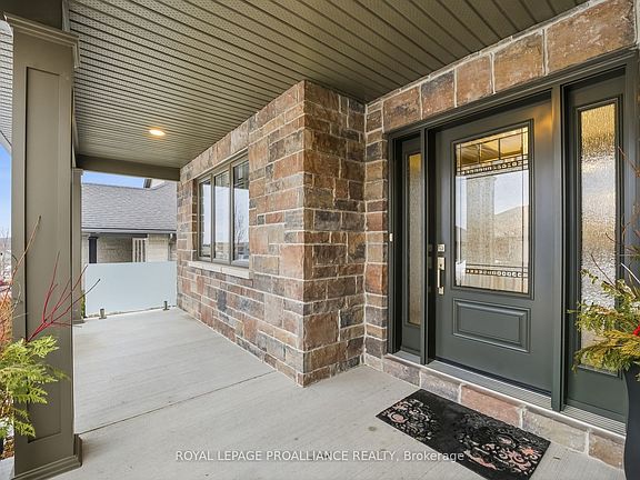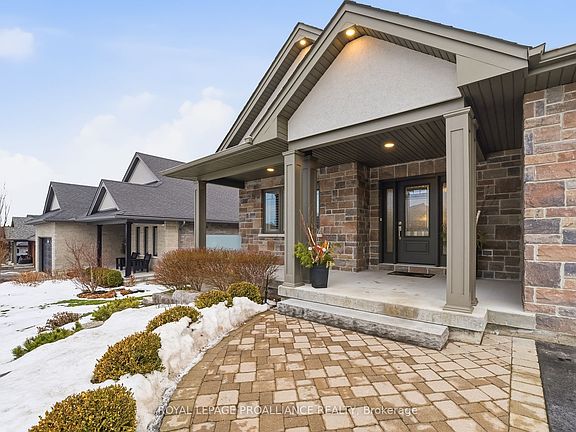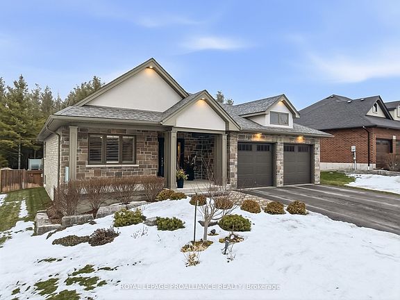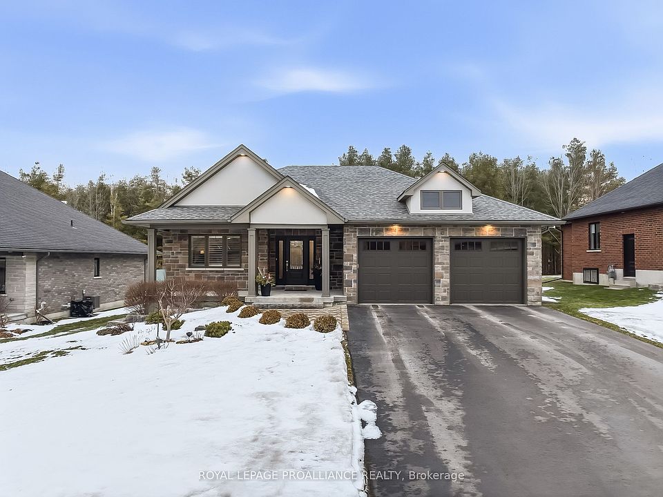 Perfectly situated in one of Brighton's most beautiful neighbourhoods, 45 Castle Ridge is ready to welcome you home! This custom designed property, built by Henderson Developments, has been thoughtfully curated to offer both a relaxed & refined lifestyle. Complete with 2+2 bedrooms & 2.5 baths, this stone & brick bungalow includes many fine features and upgrades. As you step inside the welcoming foyer, your eye is drawn to the spacious living area that highlights the stunning view of the backyard & forest beyond. Relax & enjoy in the living & dining area that showcases a gas fireplace with built-in shelves, a gorgeous tray ceiling with potlights, & a sliding door to your partially-covered deck. Outside, the professionally landscaped backyard will capture your breath! Featuring a gas fire pit & lock stone patio & a custom built shed; the fully fenced-in yard overlooks the scenic "Cedar Hill" walking trail. Back inside, the kitchen has been thoughtfully designed to offer ceiling height cabinetry with crown molding & undermount lighting, as well as quartz countertops, a walk-in pantry, & a large island, that is perfect for entertaining family and friends! Privately located, the primary bedroom overlooks the backyard & provides a luxurious retreat, complete with a walk-in closet & ensuite with double sinks, tiled shower, & custom cabinetry. Another bedroom & 2-pc bath are also located on the main floor. Descend the open staircase that leads to your finished lower level, & enjoy even more living space. The spacious rec room is bright & open & features a corner stone fireplace; ideal for cozy afternoons & evenings! Two more bedrooms & a 4 pc. bathroom with a "Neptune" jet tub round out the lower level. The attached spacious garage opens into the main floor mudroom with laundry & provides extra cabinet space for both style & convenience. With just a short commute to the GTA & a scenic drive to the County, come & enjoy the lakeside town of Brighton. "Welcome Home".