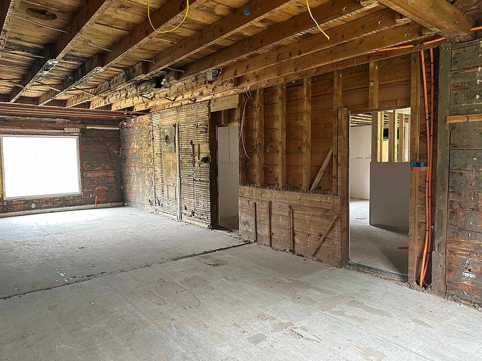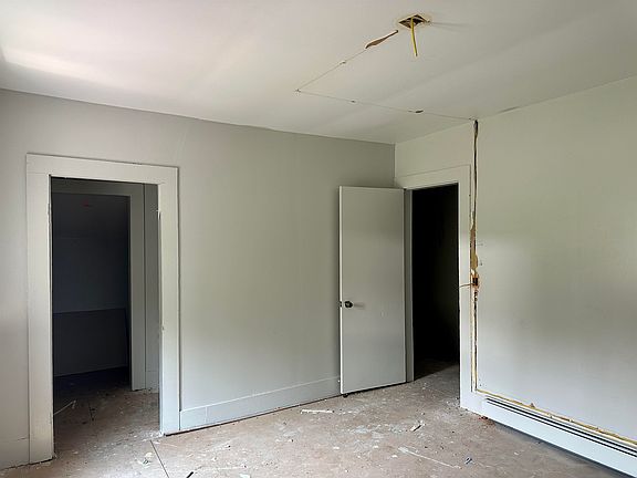 Bring your vision to life in this partially renovated home! The 4 bedroom has potential for 2 full baths and first floor laundry. The main floor offers the opportunity to create a first-floor bedroom with an ensuite full bath, along with a large mudroom and mechanical room housing a Weil-McLain boiler and a new hot water heater. Rough-in plumbing is in place for a kitchen and a full guest bath. The large family room has been gutted. Some electrical work has been completed. Upstairs, three spacious bedrooms have already been drywalled and half of the baseboard heaters have been installed and fully functioning. Outside, the property features a two-car detached garage with additional space behind it—ideal for a workshop or storage—along with a paved driveway, metal roof, and a generous yard. The newly built wrap-around porch is the perfect place to relax while making this your dream home. Located in Parishville NY - less than a quarter mile from the park and beach! Offered as is at $75,000, this property is perfect for an investor or handy buyer ready to unlock its potential.