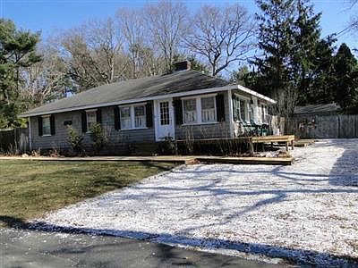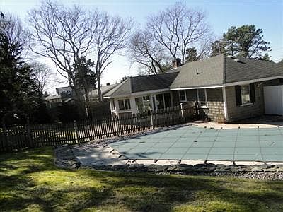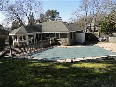 Ranch style home. Beautiful atrium sunroom, fully landscaped private backyard w new brick patio, new stone wall and updated heated inground pool. Water view from wrap-around deck. 1/10 mile to association beach and dock, which overlooks Hen Cove and a view of Bassets Island. Features: new outdoor shower, new bathroom, new doors, very large and most private backyard on the street, full basement, shed, fireplace, hardwood floors, eat-in kitchen. Selling property As Is with no warranties or representations. Existing stove will be replaced with new one.
