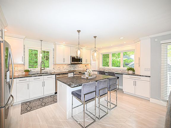 Impeccably maintained and beautifully updated freestanding condo in The Chase - North Manchester's coveted condo community. This home has 3 attractively finished levels providing over 2,355 sq ft of living space & a sizable attached 2-car garage. The spacious eat-in kitchen has been thoroughly renovated and boasts custom-built white cabinets with leathered granite counters, stone & marble backsplash, under-cabinet lighting & stainless appliances with a central island and breakfast bar. The kitchen is open to an informal living room or possible dining room with sliders to the main level back deck. There's also a magnificent front to back living room with vaulted ceilings and a wood burning fireplace. Upstairs is a spectacular primary suite with a massive spa-inspired bathroom with 2 separate vanities, a walk-in tile shower with a custom glass door & pebble shower basin floor, private toilet room, sunny skylights and programmable electric radiant heat floor! The lower level is the perfect place for family or friends with a spacious family room with floor to ceiling windows & a glass door, 2 amply sized bedrooms, a full bath & laundry closet. You'll love the finishes throughout: distressed alpine oak engineered hardwood flooring and crown molding on the 1st floor, high end vinyl waterproof plank flooring in the LL, plush carpet and gray plank ceramic tile in the primary, dimmable recessed lights, and custom window treatments throughout.