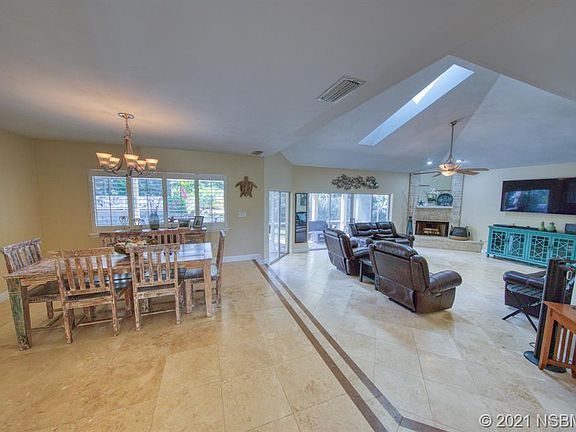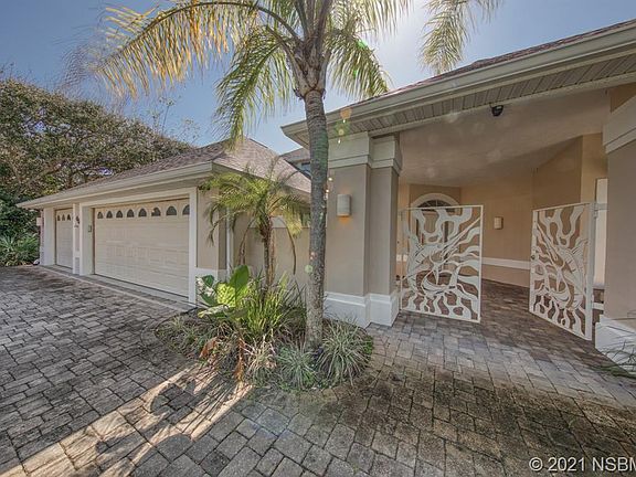 MAGNIFICENT BEACHSIDE 3BR+LOFT/2BA/3CG SOLAR HEATED POOL HOME ON QUIET CUL-DE-SAC IN SOUGHT AFTER PONCE INLET!! STEPS TO THE PRISTINE ''NO DRIVE'' BEACH AND THE LIGHTHOUSE!! This beautiful and spacious concrete block home is perfect for entertaining and offers both comfort and privacy! The huge 1/2 acre lot has a fenced yard & ample parking including a 3 car garage with drive thru to boat/RV pad. Enter the front portico through the impressive custom wrought iron gates leading to the entry courtyard of this spectacular home! Once inside your eyes focus on the expansive open floor plan with fabulous new Travertine flooring, vaulted ceiling, Plantation shutters & magnificent corner fireplace in the main living area! The updated fully-equipped eat-in kitchen with center island boasts new Granite countertops, stainless appliances, full backsplash, new faucet, a splendid wall of windows for an abundance of natural light & sliders to the pool/patio area. The upstairs has a palatial master suite with an enormous walk-in closet & an exquisite updated master bath!! The loft is perfect for an office or library! A vestibule leads to the two downstairs guest suites and a full bath which has also been updated! Enjoy the expansive paver pool/patio area with covered lanai perfect for casual al fresco dining! The fantastic outdoor cabana built on a concrete pad has custom railings & overlooks the sparkling pool and tropical landscaping! You'll feel as though you are at a private resort!! Hear the ocean & smell the salt air! Walk or bike to local restaurants, Ponce de Leon Lighthouse & Jetty Park, Marine Science Center, charter fishing, marinas & more! Florida living at it's finest!